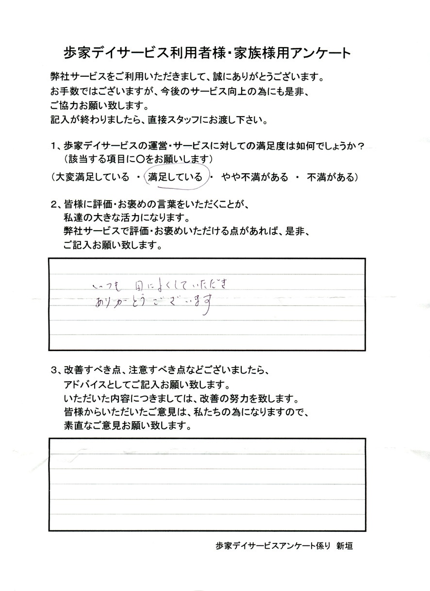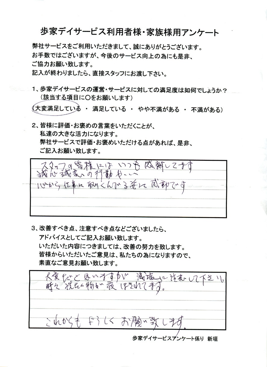 定員10名の小規模デイサービスです。少人数ならではの活動や外出支援にも力をいれています。利用者様の希望に沿ってドライブ・花見・散歩・お買い物等計画して行っております。又、料理会や制作活動等、出来る事をお手伝いしてもらいながら嬉しいを共有し共に喜び自宅にいるような環境で1日をすごしていただきます。