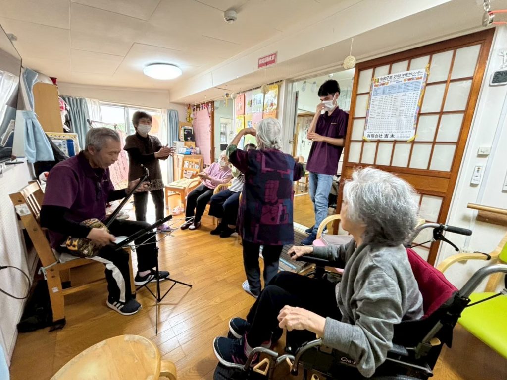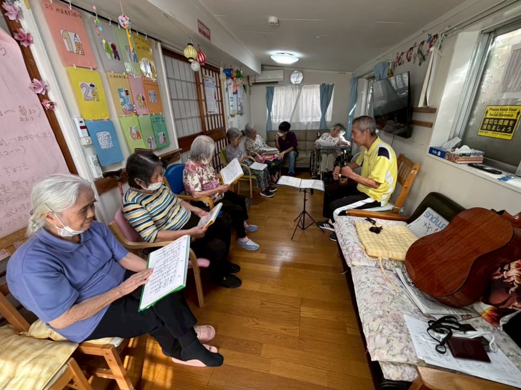 身体をうごかしたり、楽器を使って歌会を楽しんだり、様々なメニューを取り入れています。